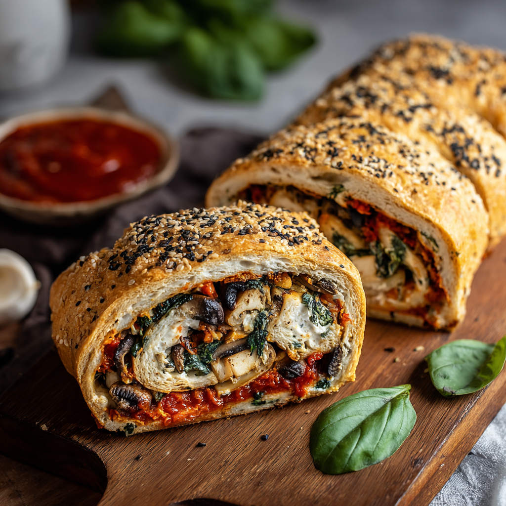 Cozy Vegan Stromboli with Tofu Ricotta and Basil is a heartwarming dish that brings together delightful flavors and aromas, perfect for any occasion. This stuffed bread features a creamy tofu ricotta filling blended with fresh basil, sautéed mushrooms, and roasted red peppers. It’s an ideal choice for casual dinners or festive gatherings, sure to impress your family and friends. Easy to prepare and customizable, this vegan stromboli offers a satisfying balance of nutrition and taste, making it a wholesome meal everyone will love.